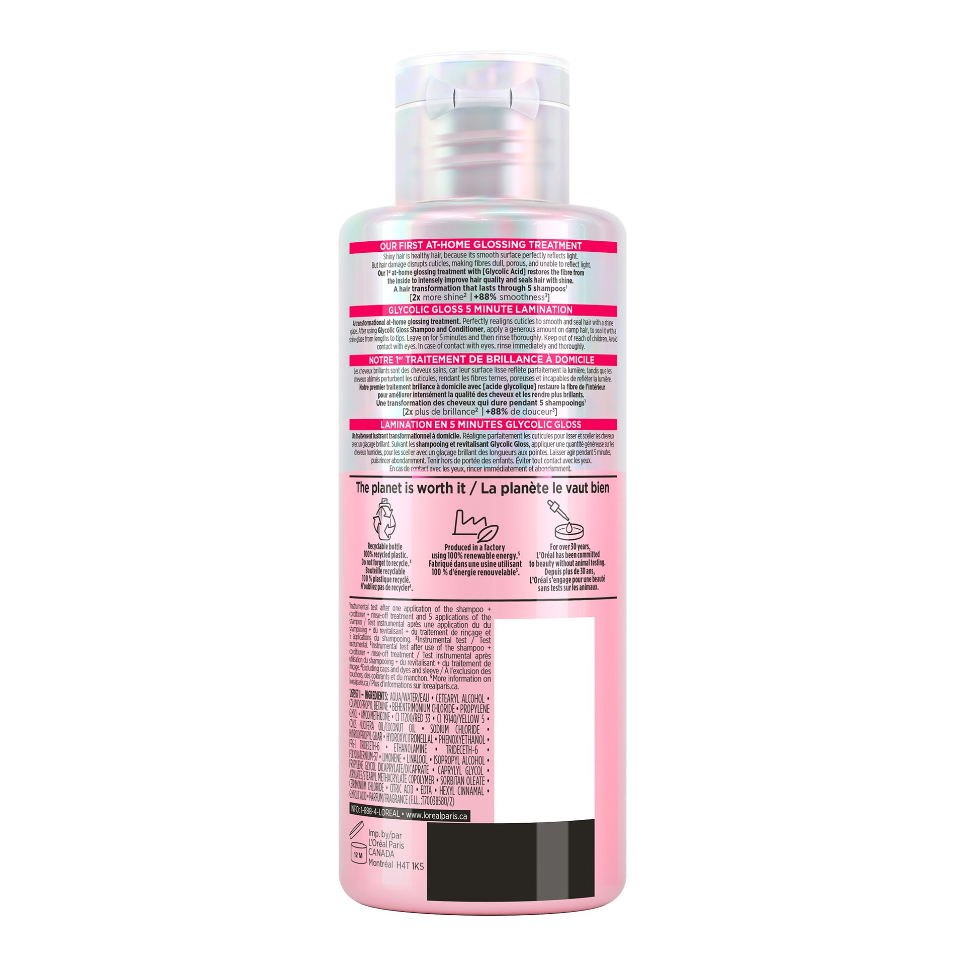 Intense, Glossy Shine in just 5 minutes: The Glycolic Gloss 5 Minutes Lamination Glossing Treatment is the 3rd and ultimate deep conditioning step of the Glycolic Gloss routine, an at-home glossing system inspired by expert color glossing solution, formulated to give your hair salon-worthy lasting shine in just 5 minutes. With the highest concentration of Glycolic Acid, this lamination treatment is the most important step to achieve the shiniest results.