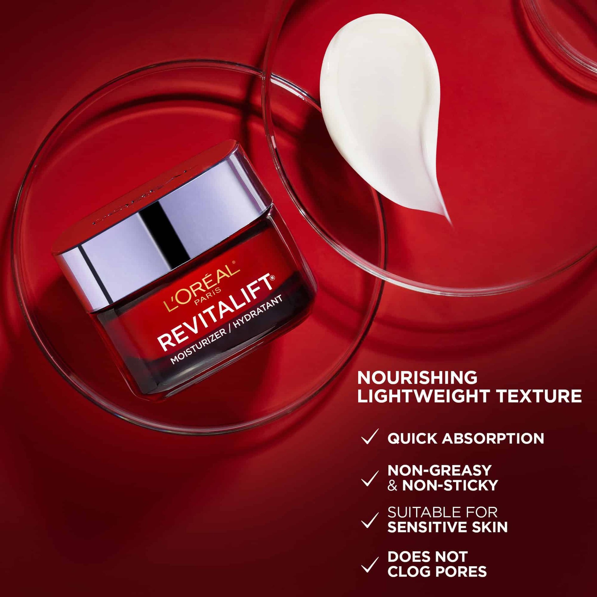 Hyaluronic acid (HA) is a potent hydration-attracting molecule naturally found in the skin, but it naturally decreases as we age, contributing to dryness and volume loss over time. Hyaluronic acid is a safe ingredient used by dermatologists for its intensely hydrating and re-plumping properties. As a cosmetic ingredient, L’Oreal Paris’s hyaluronic acid is derived through biotechnology processes and can be presented in a variety of molecular weights. High molecular weight HA stays on top of the skin to hydrate skin’s surface, and low molecular weight HA absorbs more easily for a more luxurious product texture.