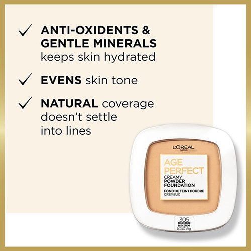 Finalement, une gamme juste pour nous avec des formules nourissantes et des couleurs flatteuses. Le Fond De Teint En Poudre Hydratant Age Perfect est formulée avec des minéraux doux et des antioxydants qui couvre instantanément l'apparence des rides et imperfections sans sécher la peau. Sa texture crémeuse douce offre un fini naturel et sans brillance. Disponible en 8 teintes crémeuses.