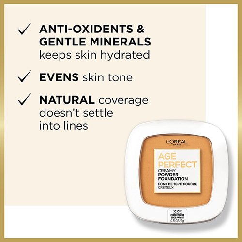 Finalement, une gamme juste pour nous avec des formules nourissantes et des couleurs flatteuses. Le Fond De Teint En Poudre Hydratant Age Perfect est formulée avec des minéraux doux et des antioxydants qui couvre instantanément l'apparence des rides et imperfections sans sécher la peau. Sa texture crémeuse douce offre un fini naturel et sans brillance. Disponible en 8 teintes crémeuses.