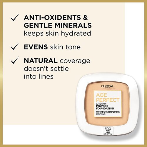 Finalement, une gamme juste pour nous avec des formules nourissantes et des couleurs flatteuses. Le Fond De Teint En Poudre Hydratant Age Perfect est formulée avec des minéraux doux et des antioxydants qui couvre instantanément l'apparence des rides et imperfections sans sécher la peau. Sa texture crémeuse douce offre un fini naturel et sans brillance. Disponible en 8 teintes crémeuses.