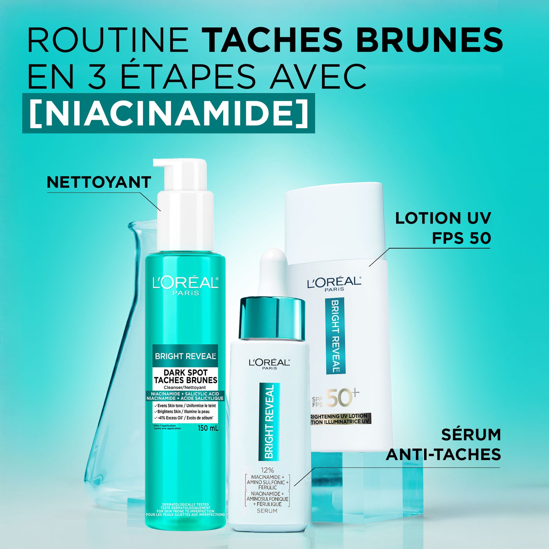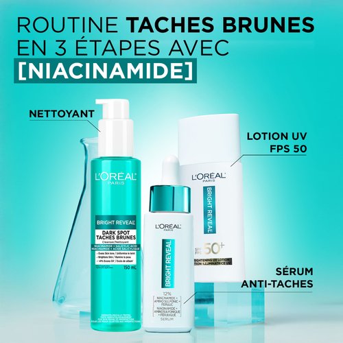 Cet ingrédient éclaircissant de qualité supérieure offre une efficacité double. Le niacinamide est un puissant ingrédient éclaircissant qui aide à réduire l'apparence des taches brunes. Il réduit l'apparence de l'hyperpigmentation, en limitant le transfert de mélanine à la surface de la peau et en contribuant à l'uniformisation du teint. En outre, la niacinamide contribue à améliorer la texture de la peau.