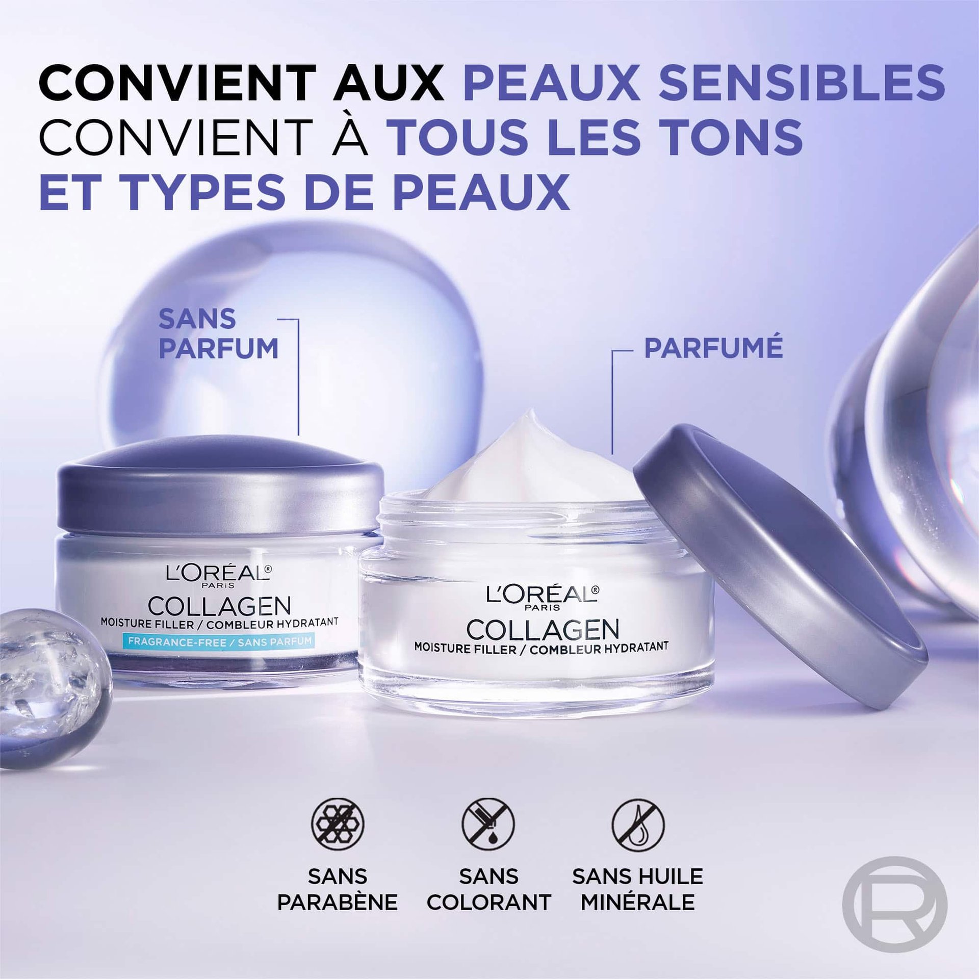 Le combleur Hydratant au Collagène Crème Jour/Nuit apporte une dose intense d'hydratation quotidienne qui aide à combler visiblement l'apparence des rides et ridules et à restaurer l'hydratation.