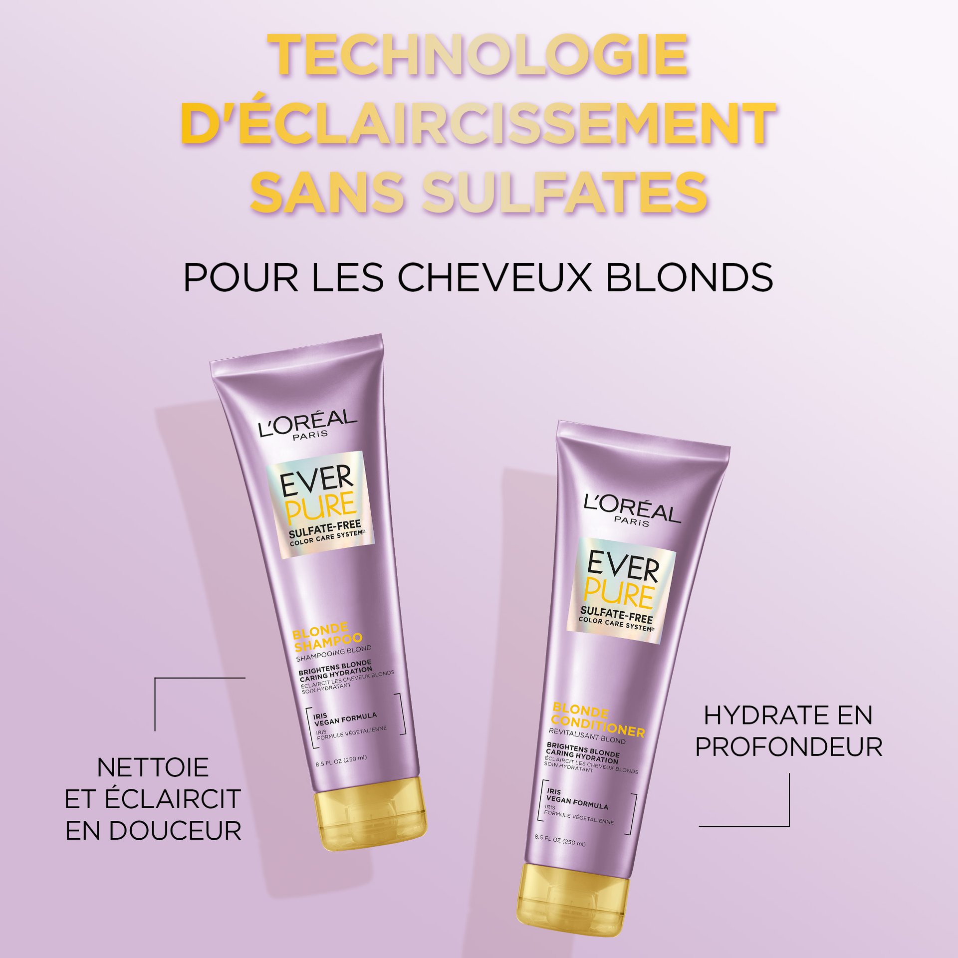 Le système EverPure blond sans sulfates: Pour un blond plus lumineux et une hydratation apaisante, utilisez le shampooing et le revitalisant EverPure blond sans sulfates en tandem.