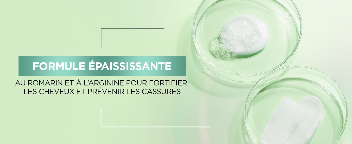 Soins de salon à domicile : Les cheveux fins et fragiles nécessitent des soins particuliers. Formulé avec une technologie épaississante à base de romarin et d'arginine pour injecter des ingrédients fortifiants dans les cheveux, les rendant 15 fois plus forts.