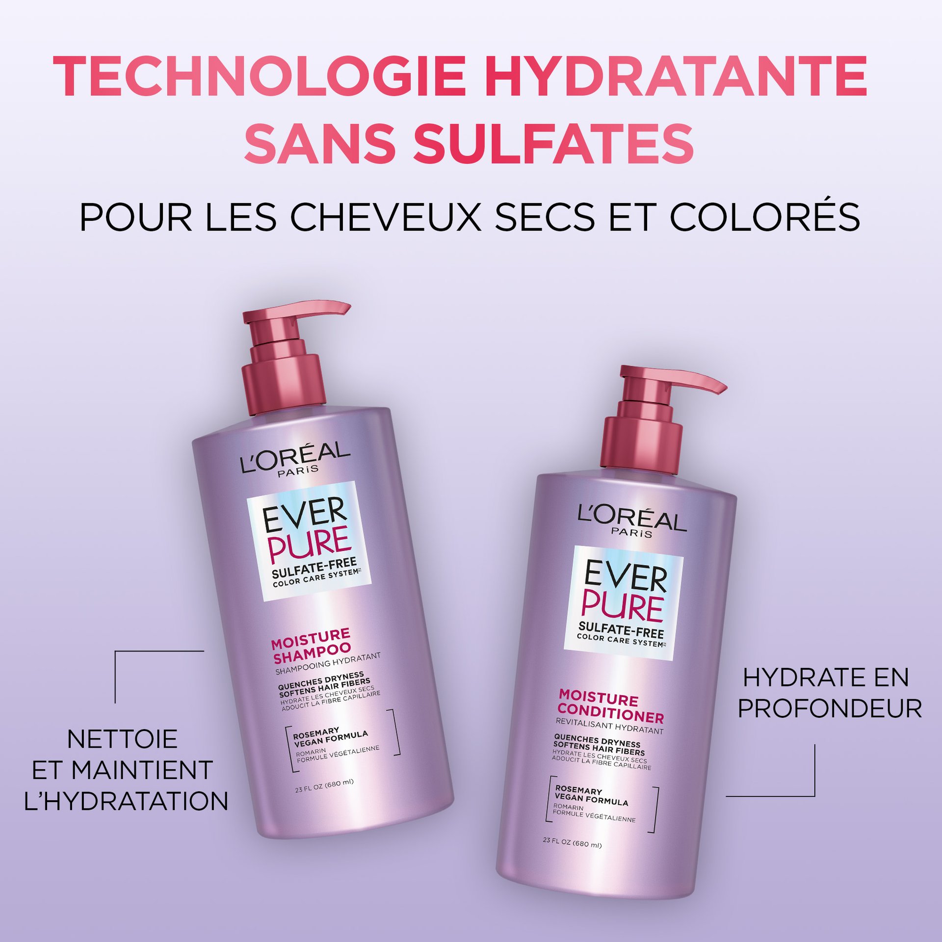 Revitalisant hydratant sans sulfates : Réparez en profondeur vos cheveux secs. Le revitalisant EverPure hydratant sans sulfates est spécialement conçu pour hydrater les cheveux secs tout en protégeant votre couleur.