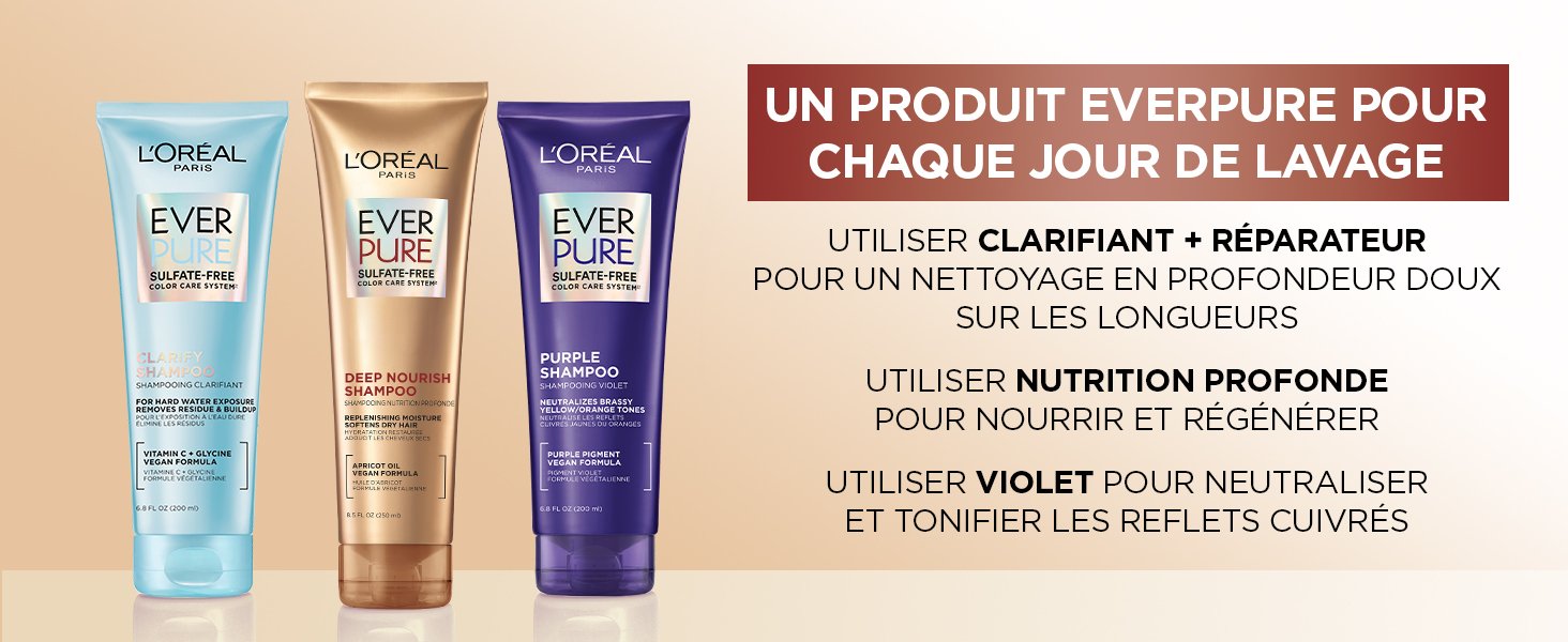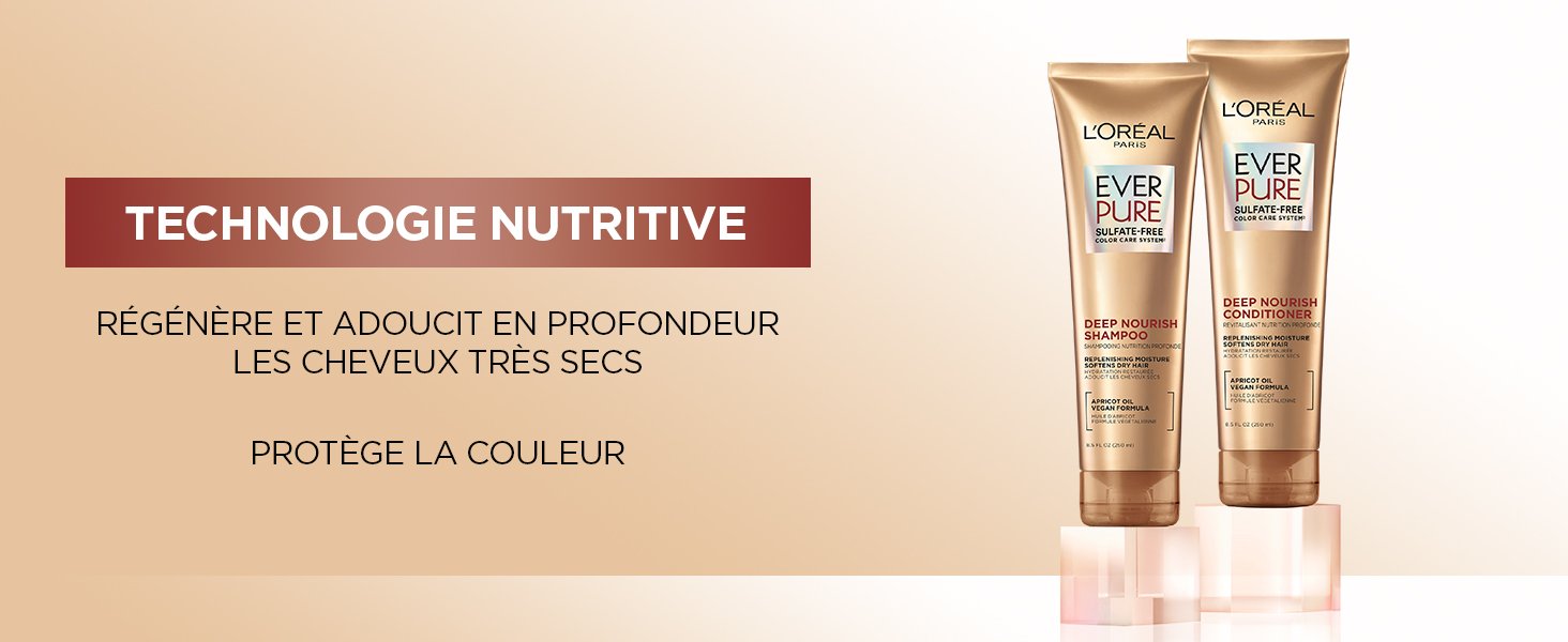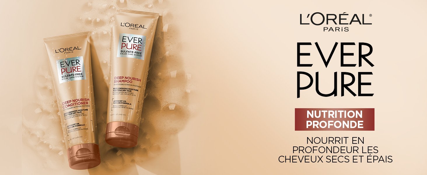 Le système EverPure nutrition profonde sans sulfates: Pour une hydratation intense et une douceur instantanée, utilisez le shampooing et le revitalisant EverPure nutrition profonde sans sulfates en tandem.