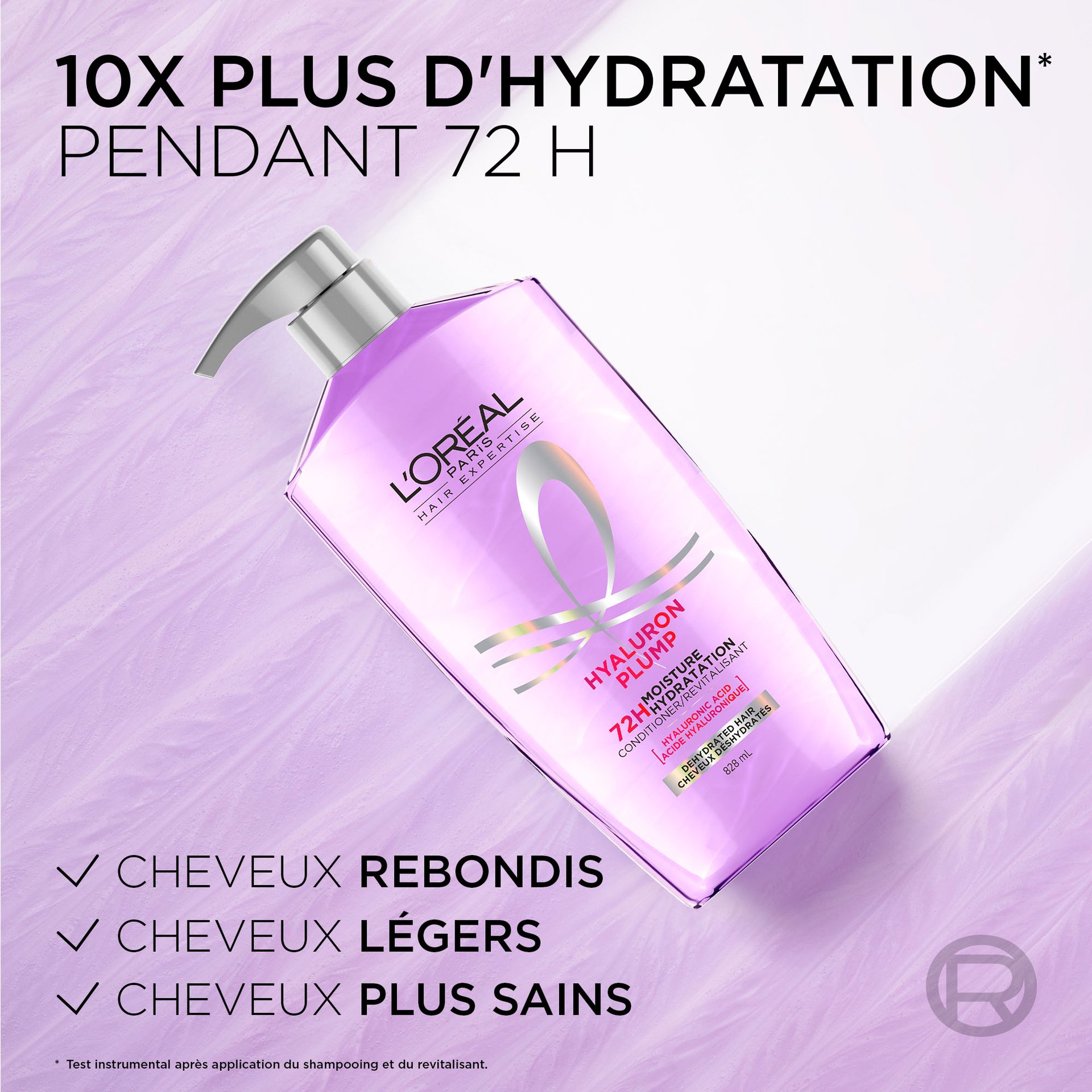 - Soins pour Cheveux Déshydratés : Notre revitalisant Hyaluron Plump est spécialement conçu pour hydrater les cheveux pendant 72 heures, pour des cheveux plus brillants, jusqu'à 10 fois plus hydratés.