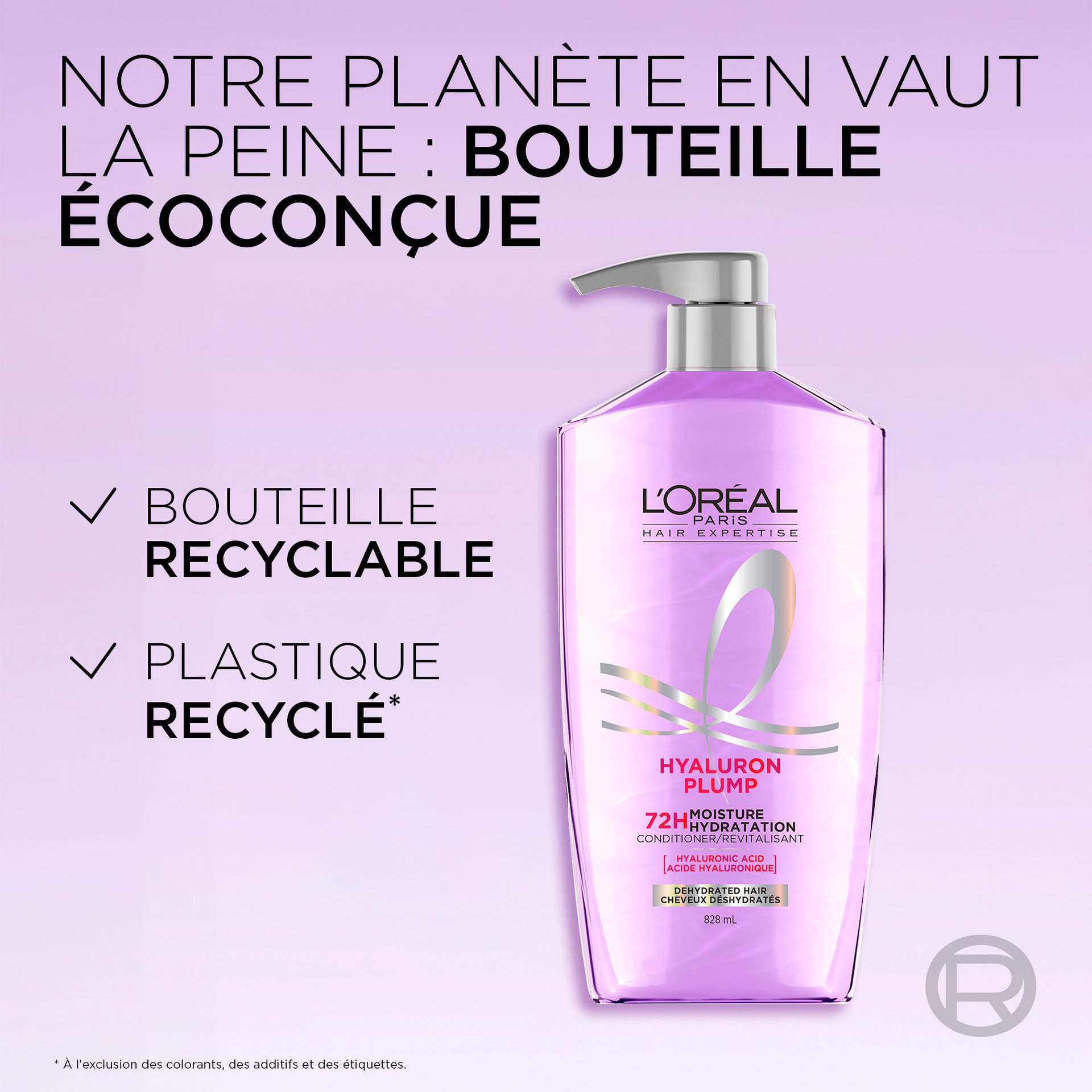 - Engagement pour la Planète : Nos nouvelles bouteilles éco-conçues sont 100 % recyclables à partir de plastique 100 % recyclé, et utilisent moins de 27 % de plastique que nosemballages précédents.