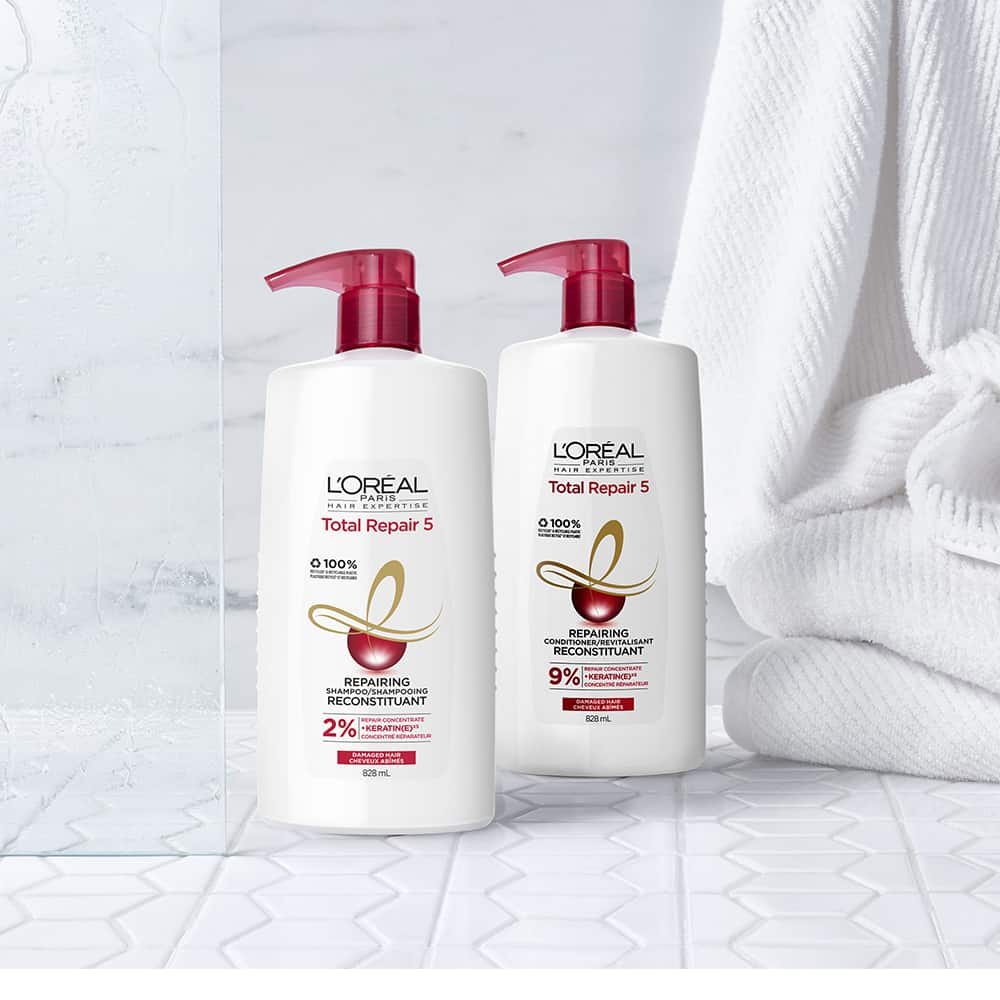 Masque réparateur pour cheveux : Le masque réparateur Total Repair 5 de L'Oréal Paris Hair Expertise pour les cheveux abîmés répare les signes d'abîme et rétablit les 5 signes clés d'une chevelure d'apparence saine.