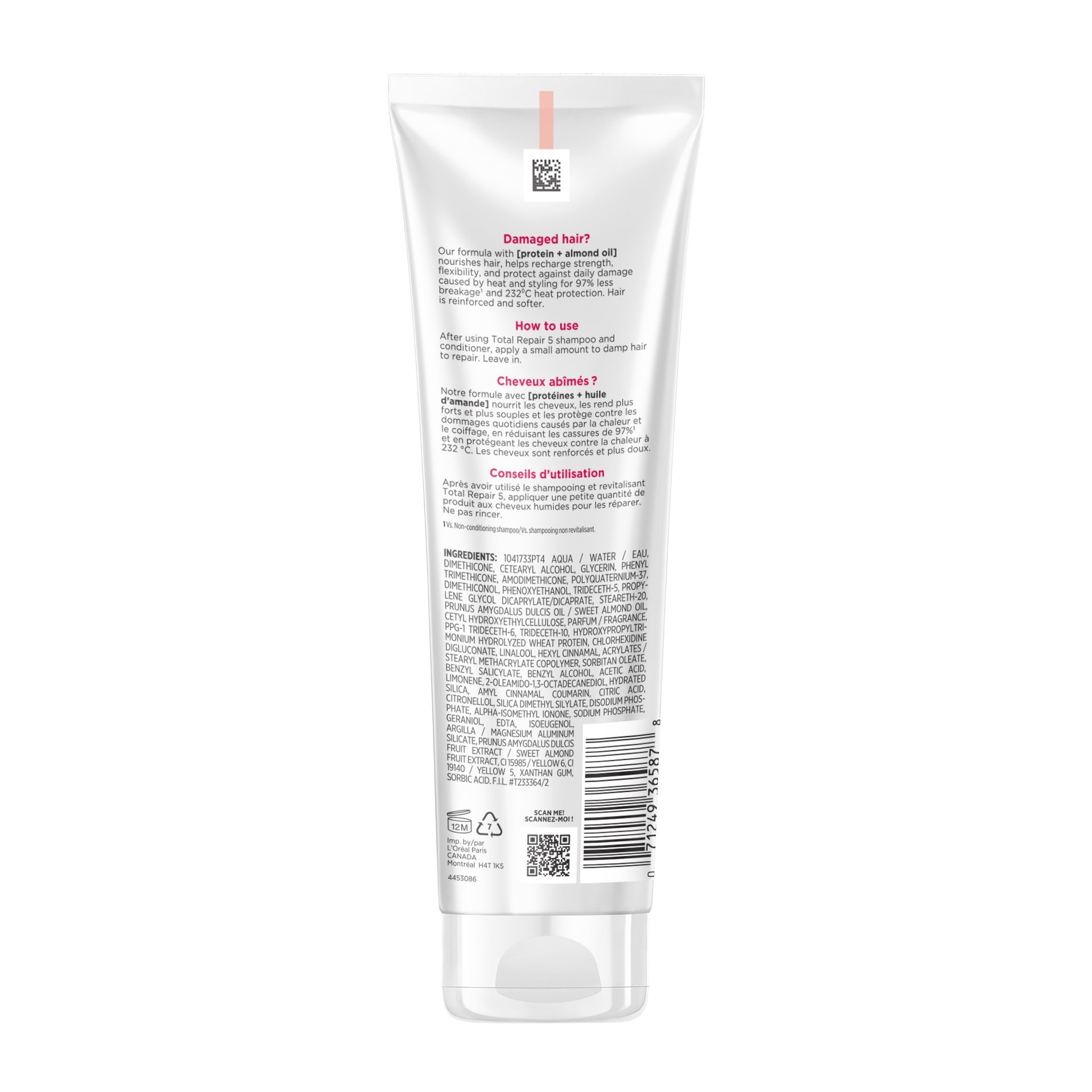 Formule nourrissante sans rinçage : Le revitalisant sans rinçage Total Repair 5 Protein Recharge est enrichi d'un mélange de protéines et d'huile d'amande, conçu pour nourrir et recharger vos cheveux en profondeur, les rendant plus forts et plus souples.
