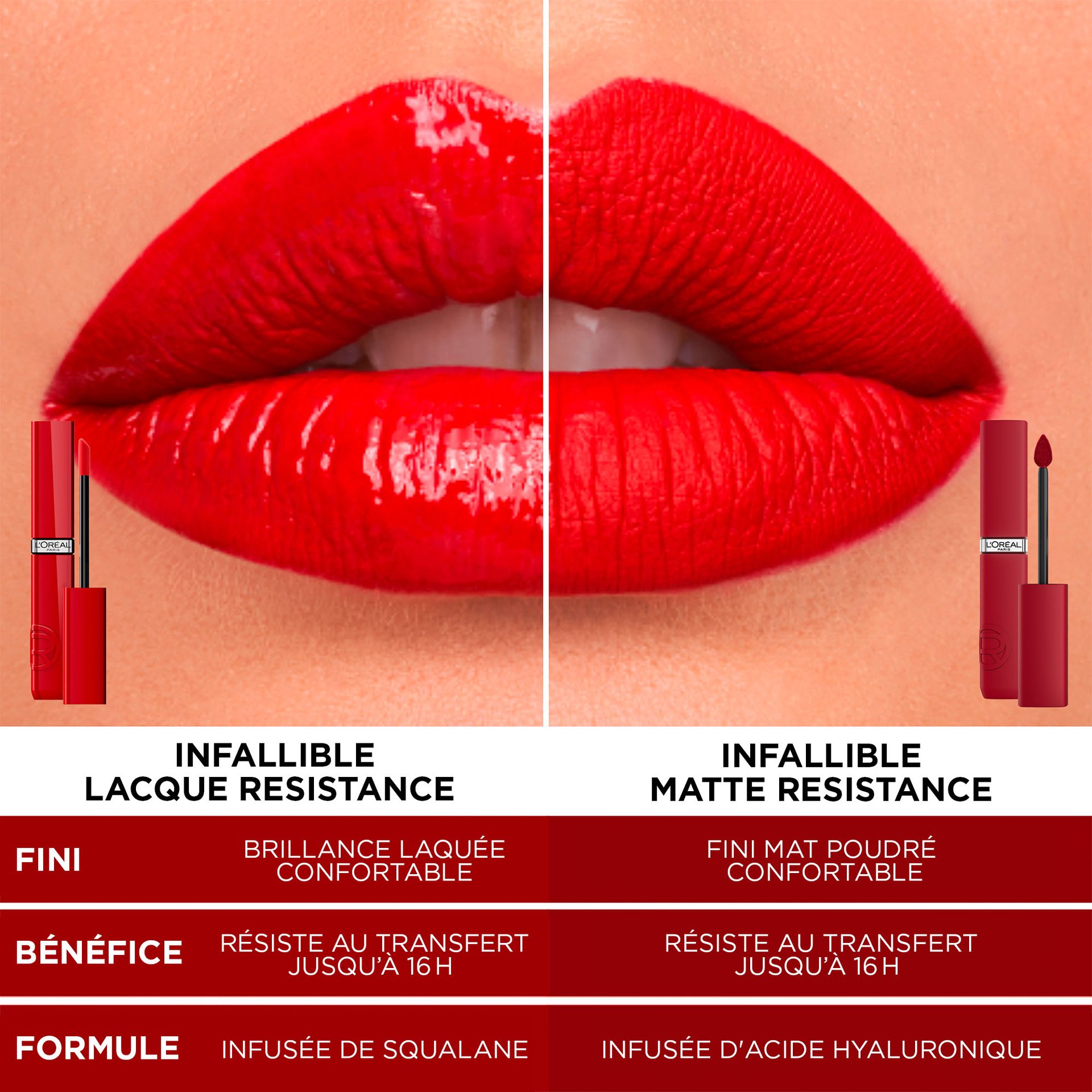 Préparez-vous à redéfinir la longue tenue avec L'Oréal Paris Infaillible Lacque Resistance. Ce rouge à lèvres à la texture laquée offre une tenue de 16 heures, résistant au transfert et aux bavures. Bénéficiez d'un confort optimal et d'une application impeccable à chaque fois grâce à son applicateur précis.