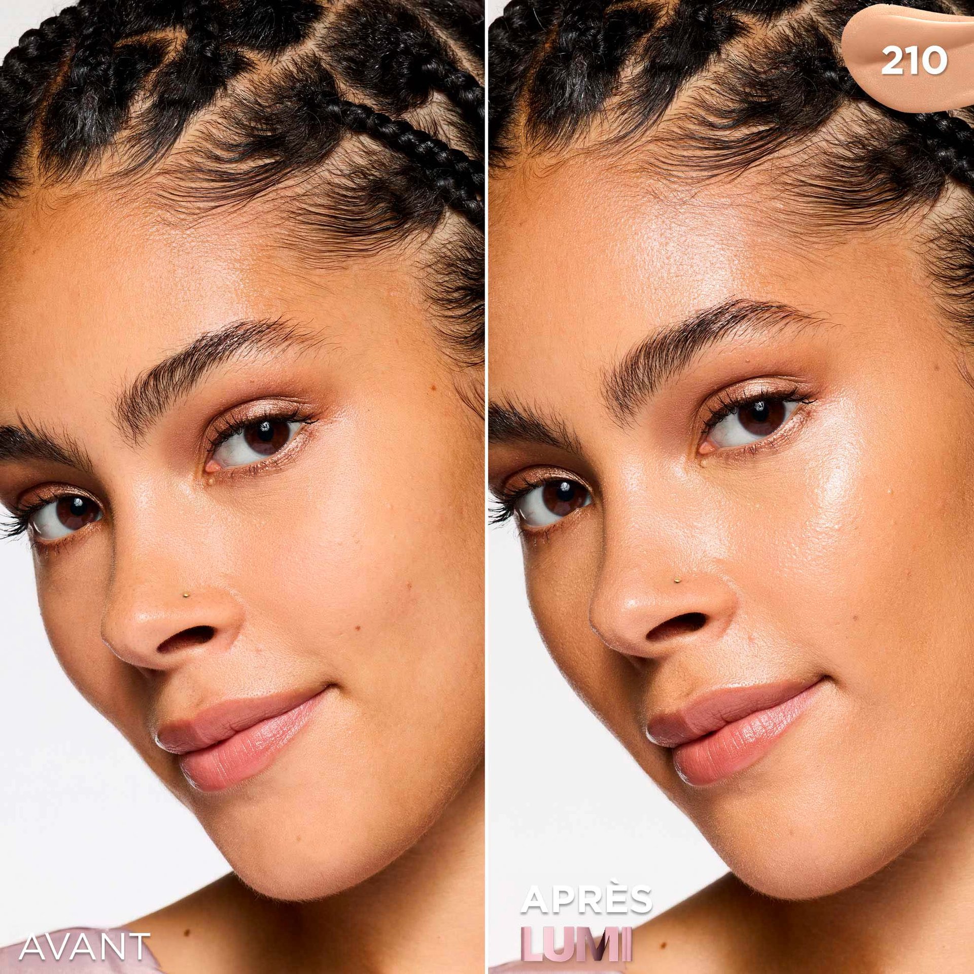Agitez et appuyez sur la pompe pour distribuer le produit, puis appliquez avec les doigts, une éponge ou un pinceau. Complétez le look Lumi avec Lumi Le Liquid Blush, Lumi Glotion et Lumi Le Glass Highlighter Stick.