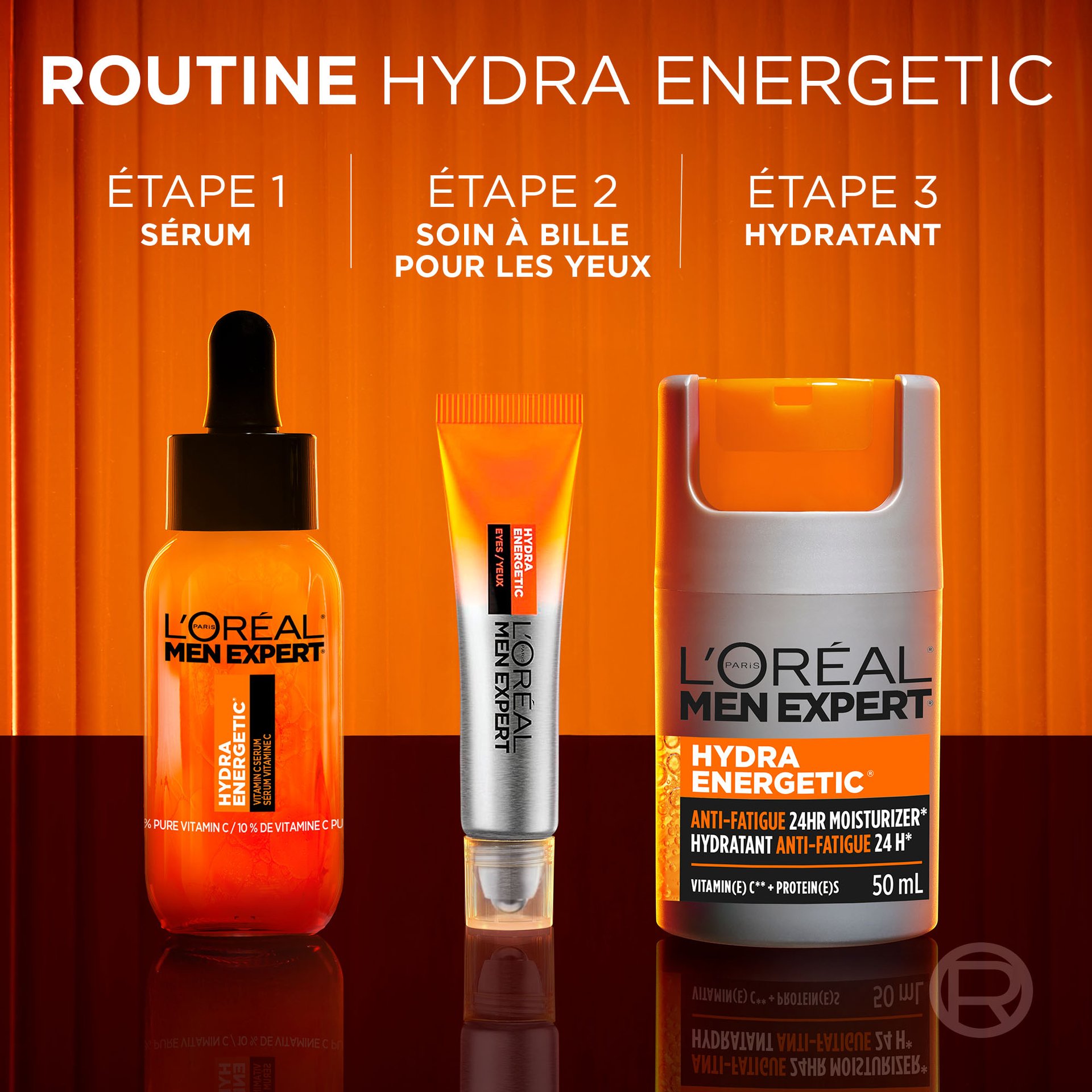 Votre routine anti-fatigue : Combinez ce sérum avec la crème hydratante et le roll-on pour les yeux Hydra Energetic Anti Fatigue de L'Oréal Paris Men Expert pour en amplifier les bienfaits.