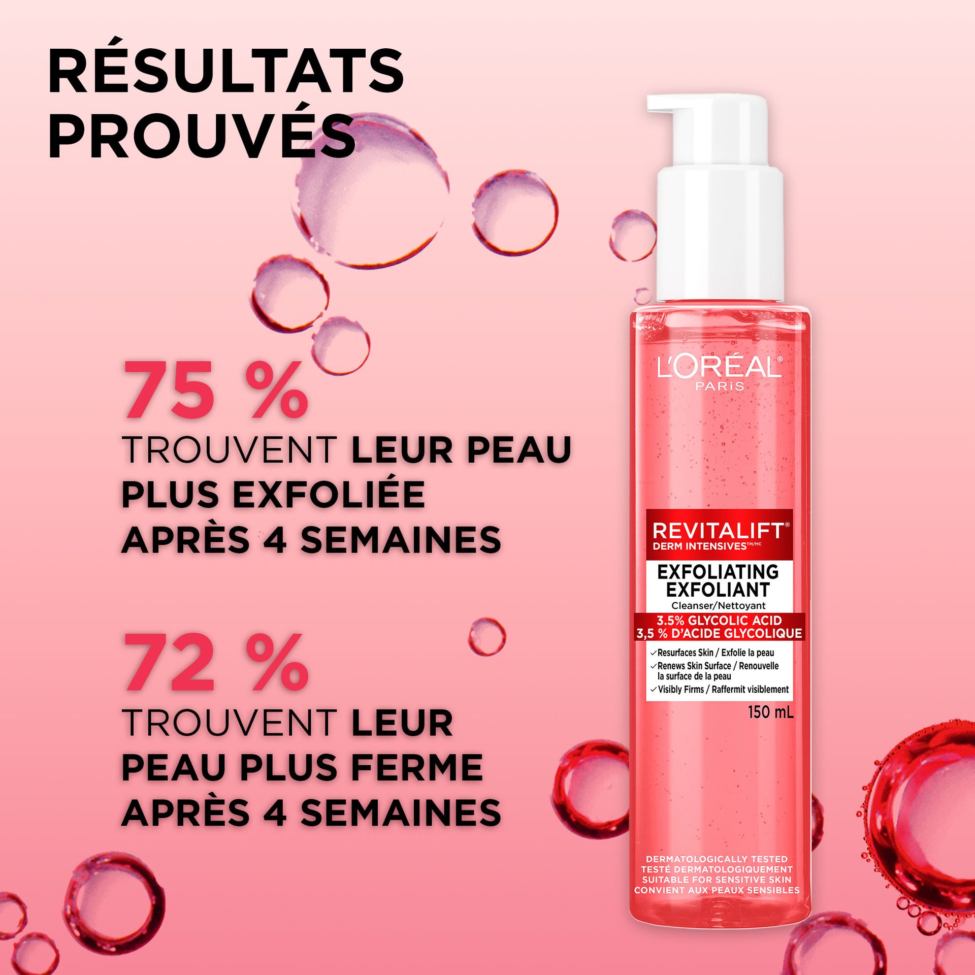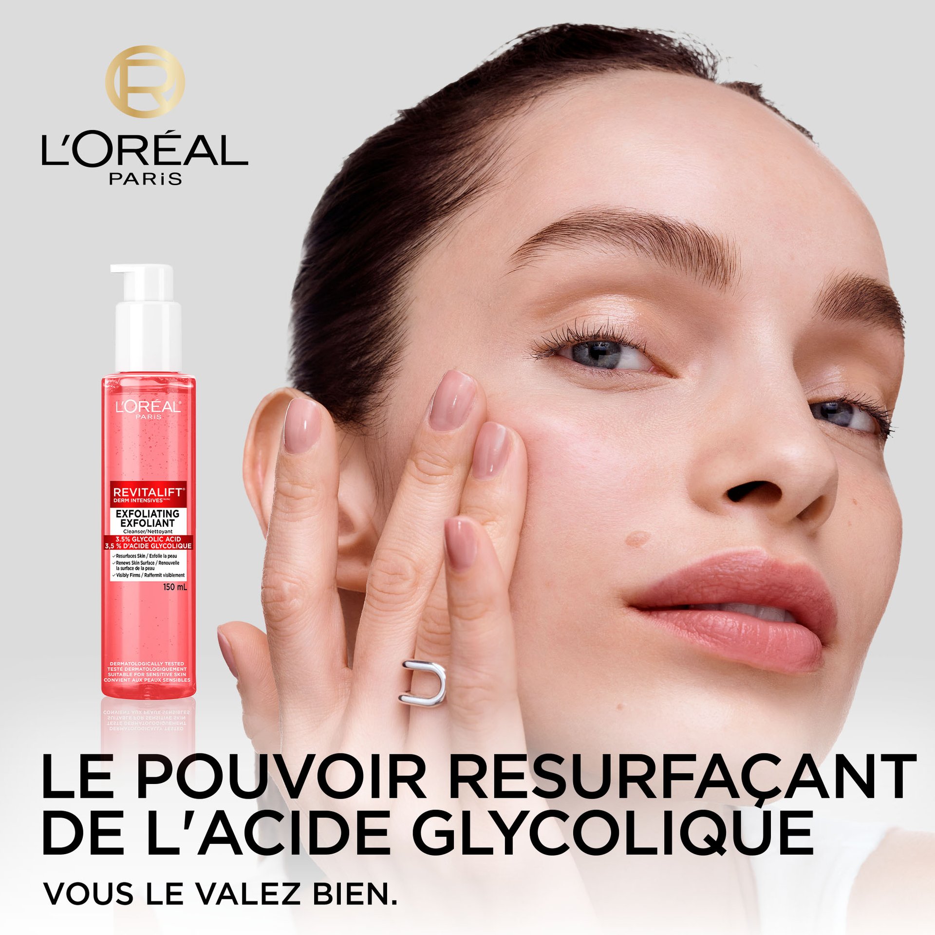 Revitalisez votre peau avec le nettoyant exfoliant Revitalift de L'Oréal Paris à l'acide glycolique pour resurfacer la peau et réduire l'apparence des rides et ridules pour une apparence plus jeune.